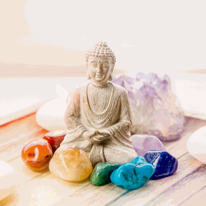 Chaque chakra est représenté par une couleur et y sont associés des pierres et cristaux de même couleur pour répondre aux besoins énergétiques.